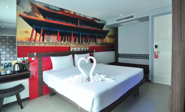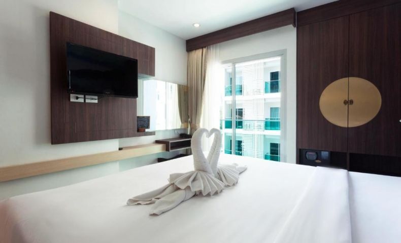 Deluxe Room: 24м2, само легло king-size и баня с душ и вана, сешоар (при запитване), самостоятелен балкон с гледка към град Патонг, LCD телевизор, тераса/балкон, сейф, безплатен Wifi интернет.