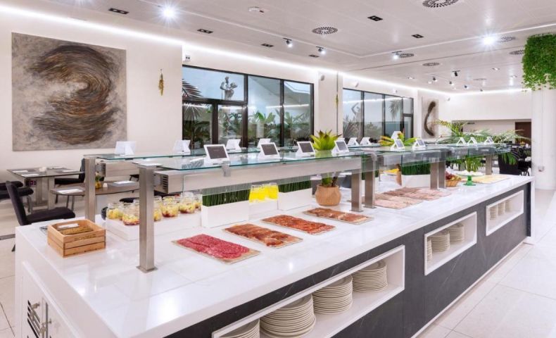 Разполага с бюфет за закуска, основен ресторант и бар.