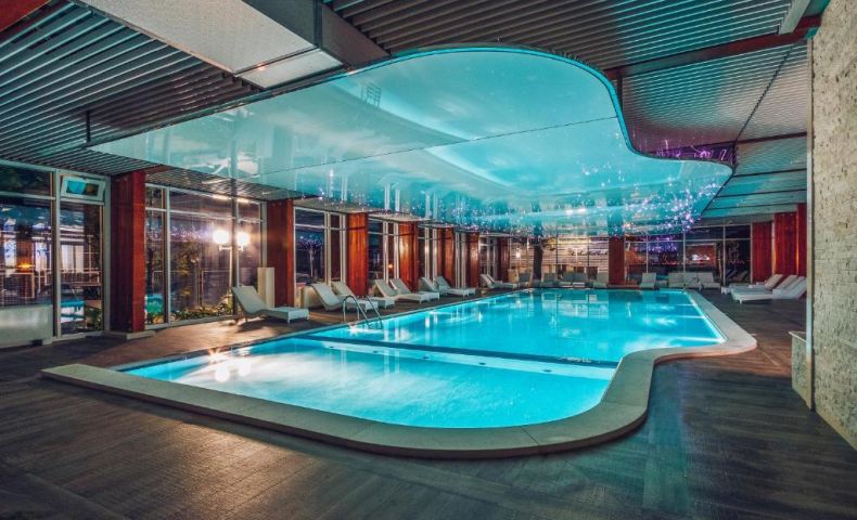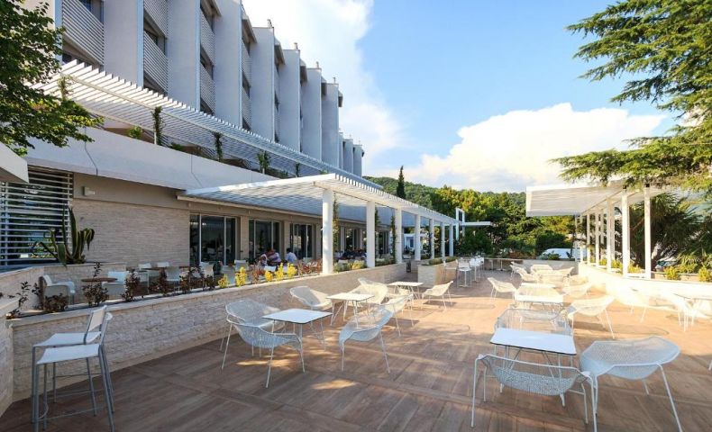 Основен ресторант, 4 бара: Snack Bar - Bijela, Lobby Bar - Pajuli, Beach Bar - Bonacca. Открит басейн, закрит басейн и детски басейн, СПА център.