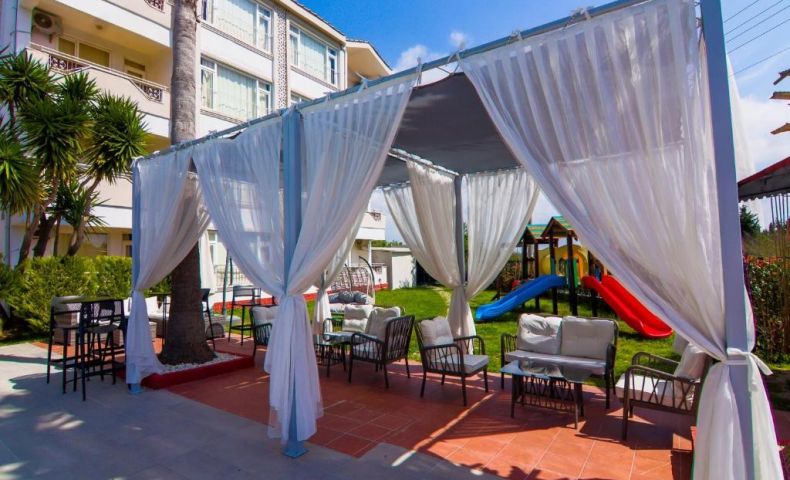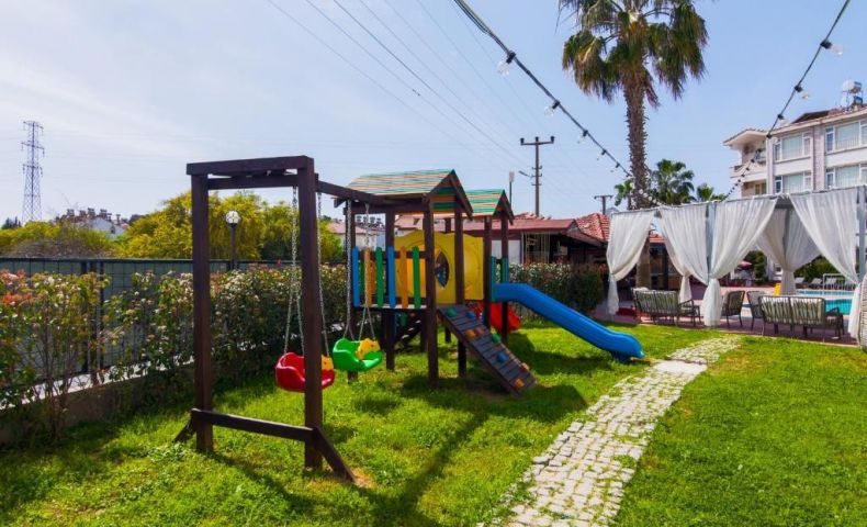 На територията на хотела:В нашия хотел New Garden Side има общо 64 стаи, той е с обща площ от 5000 м2, включително открит плувен басейн с площ 200 м2 и детски басейн, в градината има тревни площадки за деца и отделни зони за отдих за възрастни, в хотела има също пазар и магазин за сувенири.
