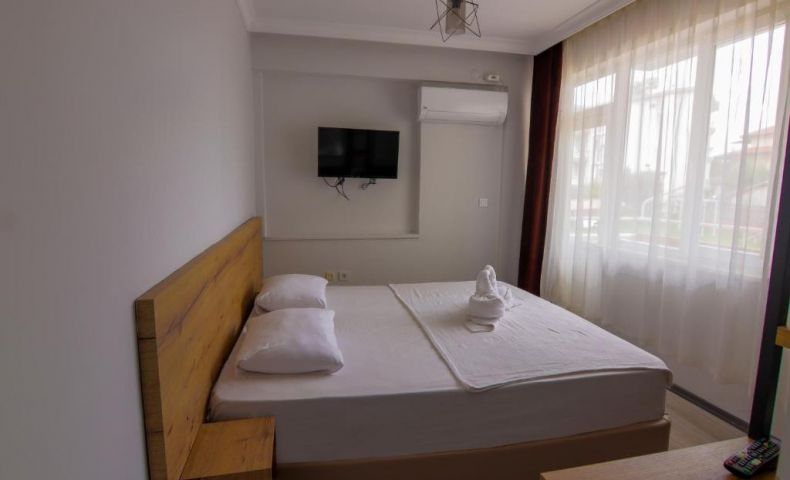 Нашият хотел, който се намира на пешеходно разстояние от града на средиземноморската марка, центъра на Древна Сиде и известния пясъчен плаж със син флаг, предлага и допълнителни опции за настаняване само в стая, като например нощувка със закуска или полупансион.