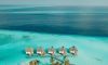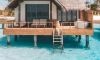 Премиум водни вили от 122 кв.м с king size легло за 3-ма възрастни, разположени над лагуната, с частен стъклен басейн, четирипостерно легло и спиращи дъха гледки към океана и залеза.