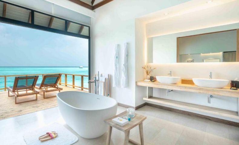 Вили с площ 122 кв.м, king size легло за 3-ма възрастни, с гледка към океана, частен басейн и тераса, идеални за изгреви, коктейли и пълно уединение сред малдивската природа.