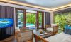 В стаите: Стаята разполага с Wi-Fi, телевизор, климатик и вентилатор на тавана. Има сейф, станция за чай, модерна баня с душ, сешоар, чехли, халат и пълен комплект козметика. На ваше разположение са също ютия и дъска за гладене. Вилата разполага с тераси с шезлонги и чадъри. За любителите на кафе има кафе машина. Стаята се почиства ежедневно. На ваше разположение са телефон, минибар и мини винарска изба (срещу допълнително заплащане). Предлага се рум-сървис (също срещу допълнително заплащане).