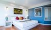 Deluxe Room – 38 м2, голяма стая с двойно легло или две единични легла, голяма баня с отделна вана и душ, балкон. Всички стаи предлагат изглед към басейна и градините, като няколко стаи на последния етаж предлагат частичен изглед към морето. Оборудвани са с телефон, климатик, халати за баня, минибар, телевизор, сейф, сешоар, WiFi интернет, хавлии за басейн/ плаж, сет за приготвяне на кафе и чай.