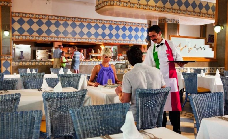 На територията на хотела: Основен ресторант, 2 а ла карт ресторанта (срещу заплащане, едно безплатно посещение за престой с предварителна резервация), снак ресторант, лоби бар, бар басейн, бар на плажа, открит басейн, 2 джакузита, закрит отопляем басейн през зимата, вътрешен басейн в СПА центъра (срещу заплащане), анимация, тенис корт, Wi-Fi в лобито и в стаите, паркинг, аеробика, водна гимнастика, фитнес зала, плажен волейбол, тенис на маса, боча.