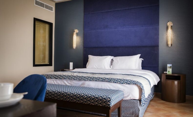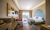 В стаите: Всички стаи са с балкон или тераса, с градински маса и столове и/или шезлонги, сателитна телевизия, сейф, сешоар, минибар. Двойни стаи-33 кв.м, две двойни легла или спалня, диван в лаундж зоната. Фамилни стаи- 66 кв.м., 2 отделни спални свързани помежду си, с две двойни легла, фамилна спалня и две бани. Senior Suite и Junior Suite- 105 кв.м., хол, 2 отделни спални, 2 бани с душ кабина и вана и гледка към морето.