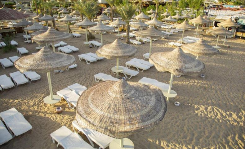 Собствен, пясъчен, кей, достига се през крайбрежната алея. Чадъри и шезлонги на плажа и при басейна - безплатно. Плажни кърпи - безплатно.