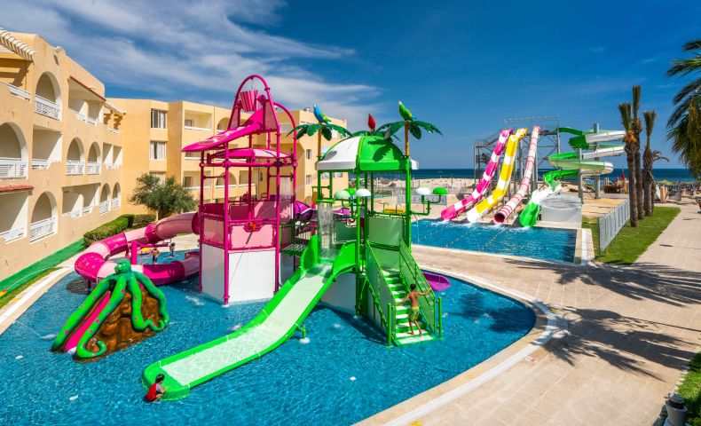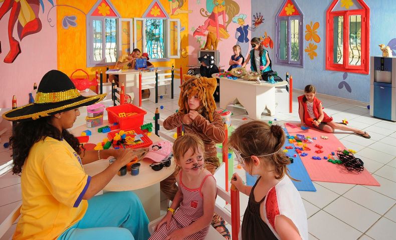 За децата: детски басейн с мини пързалки, втори детски басейн, мини клуб (4-12 год), детска площадка, детски столове в ресторантите, бебешка кошара (по заявка, при наличност).