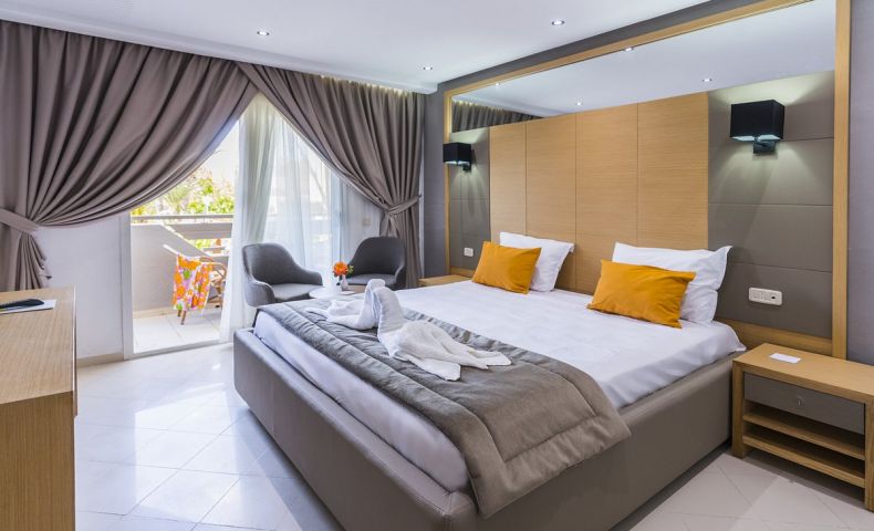 Хотелът разполага с общо 308 стаи, разположени в триетажни сгради, като основната сграда разполага с два асансьора - Standard Room (29 кв.м), Sea View Room (29 кв.м), Superior Room Garden View (29 кв.м), Connecting Room (две стаи със свързана врата).