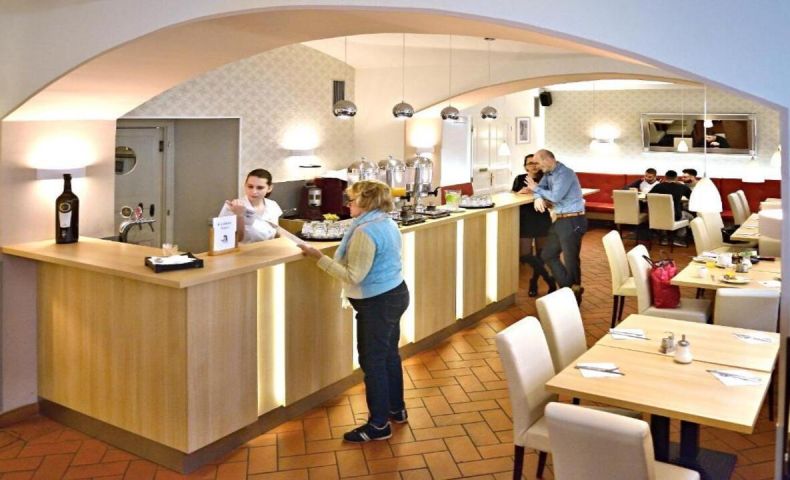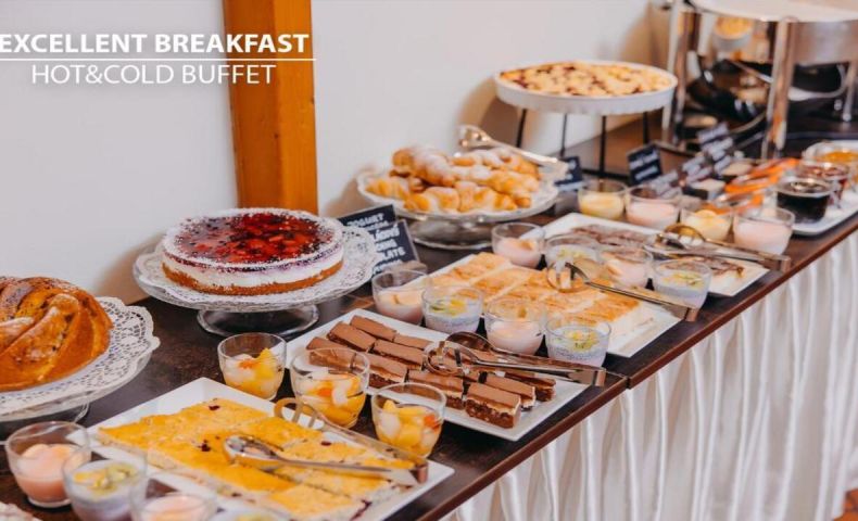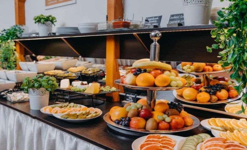 Ресторантът на хотела сервира изобилна закуска на шведска маса всяка сутрин, включваща както топли и студени ястия, така и традиционни чешки печива и напитки.