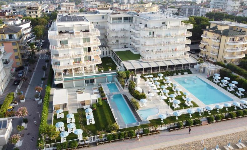 Разположен на 150 метра от Адриатическо море, хотелът предлага Турска баня, гореща вана ,сауна и още много страхотни удобства .Той е удобно разположен, само на няколко метра от крайбрежната алея, пълна с най-модерните магазини, барове и ресторанти в града. В обсега на кратка разходка или още по-кратко пътуване с някой от безплатните велосипеди на хотела ще откриете разнообразие от атракции. Наблизо има тенис кортове, писти за конна езда, голф игрище и аквапарк Aqualand.