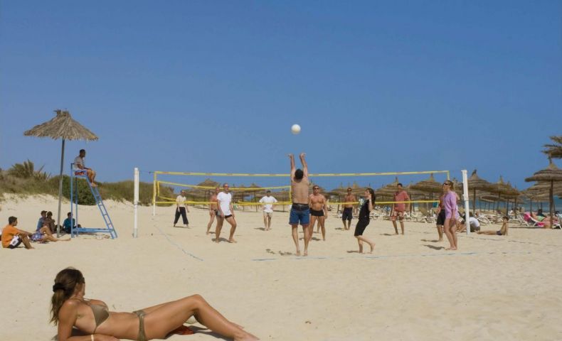 Собствен, пясъчен. Чадъри, шезлонги и матраци на плажа и на басейна – безплатно. Плажни кърпи – безплатно, срещу депозит.