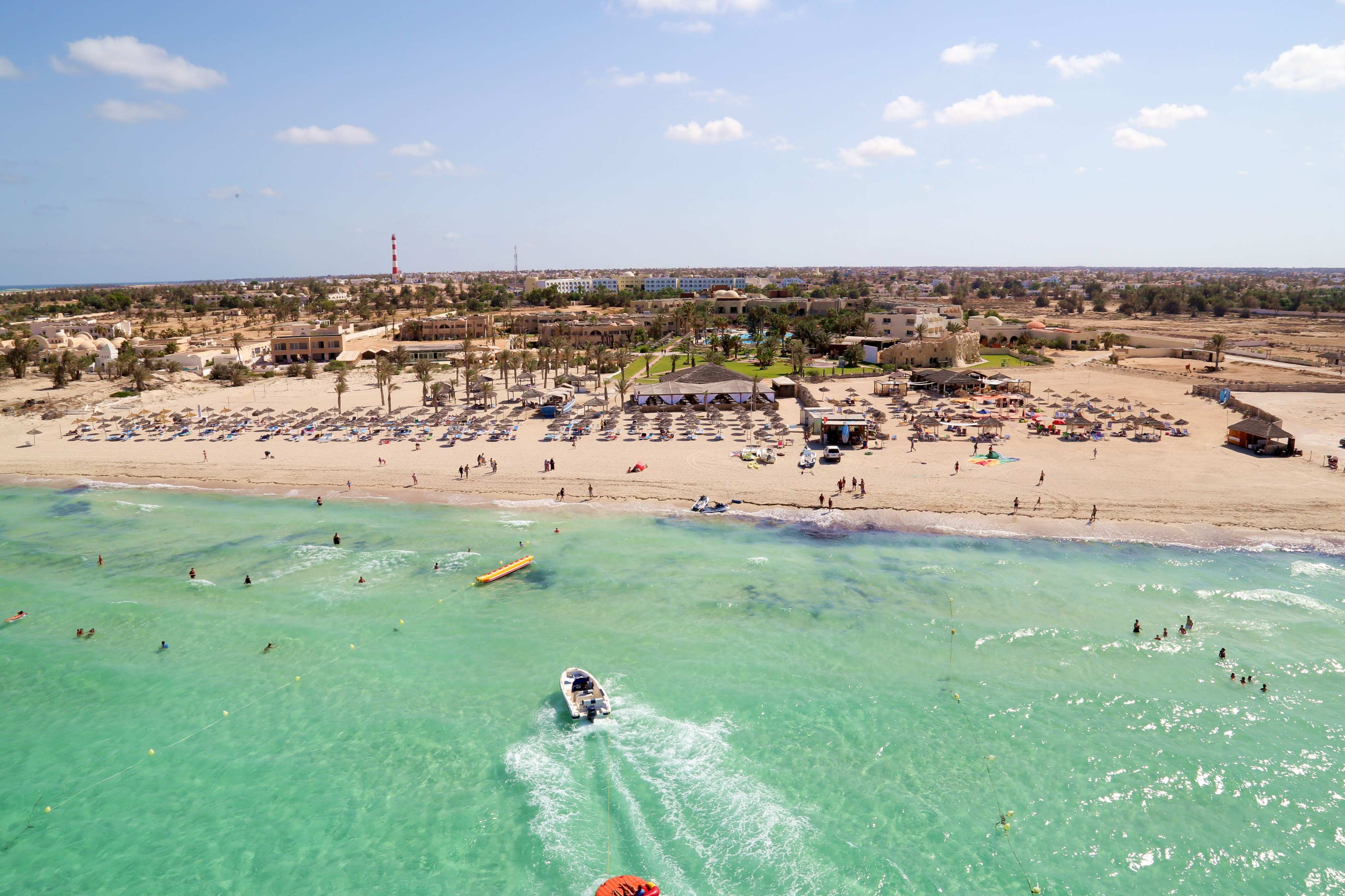 Намира се на 34 км от летище Джерба, на 12 км от центъра на Мидун, на 19 км от столицата на о-в Джерба Хумт Сук, на 3 км от голф клуб Джерба, на брега на морето.