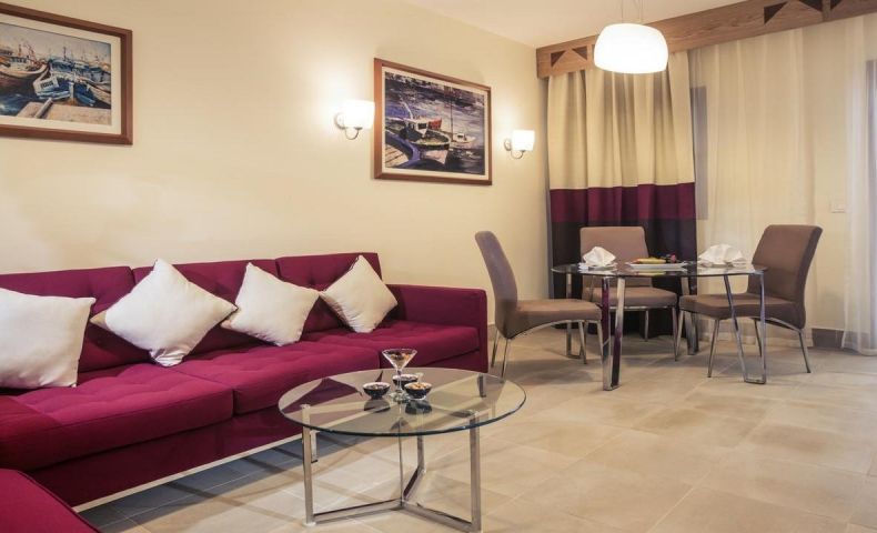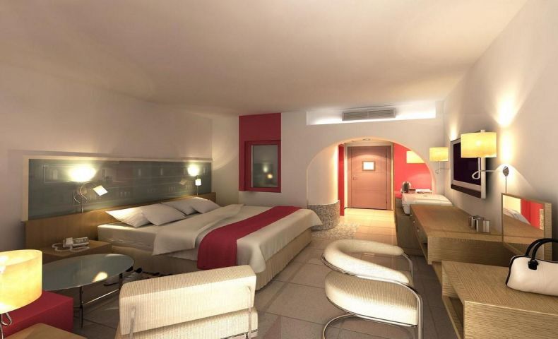 Хотелът разполага с общо 469 стаи, разпределени в 6 корпуса, състоящи се от двуетажни и триетажни сгради, от които Double Room (с изглед към градина/ море/ басейн – 22 м2), Superior Room (с изглед към градина/ море/ басейн – 52 м2), Family Room (с изглед към градина/ море/ басейн – 52 м2), Suite (с изглед към градина/ море/ басейн – 108 м2). Всички стаи са оборудвани с климатик, телевизор, телефон, баня с душ/вана, сешоар, мини-бар (зарежда се с една бутилка минерална вода на човек на ден, безплатно), сейф (безплатно), балкон. Почистване на стаите и смяна на кърпи - всеки ден, смяна на спално бельо - 2 пъти седмично.