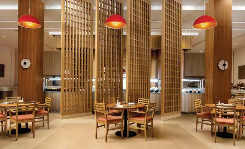 - Основен ресторант – предлага закуска, обяд и вечеря на бюфет с интернационална кухня и разнообразие от ястия, включително вегетариански и здравословни опции