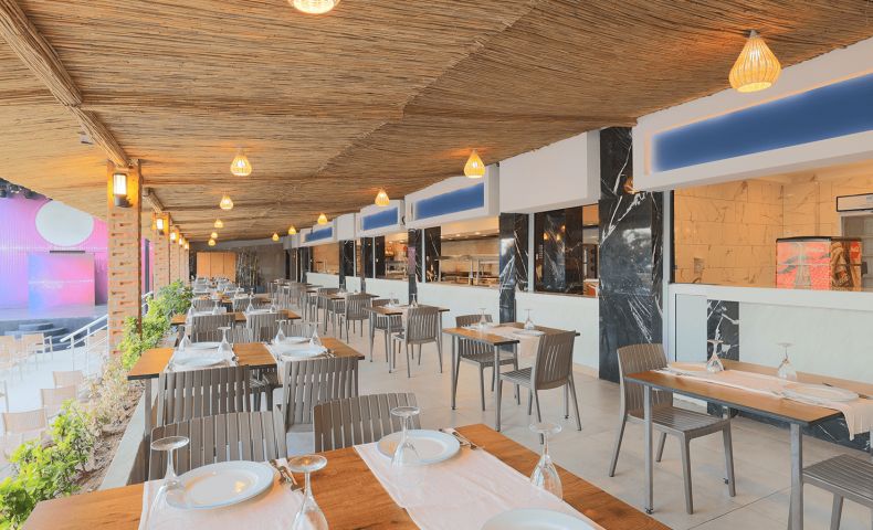 Основен ресторант, 1 а-ла-карт ресторанта (1 безплатно посещение при минимум 7 нощувки, с предварителна резервация), 1 снек ресторант, сладкарница, 3 бара, 2 открити басейна, 4 водни пързалки, СПА център, магазини, паркинг.