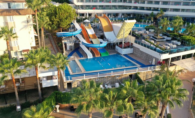 Основен ресторант, 1 а-ла-карт ресторанта (1 безплатно посещение при минимум 7 нощувки, с предварителна резервация), 1 снек ресторант, сладкарница, 3 бара, 2 открити басейна, 4 водни пързалки, СПА център, магазини, паркинг.