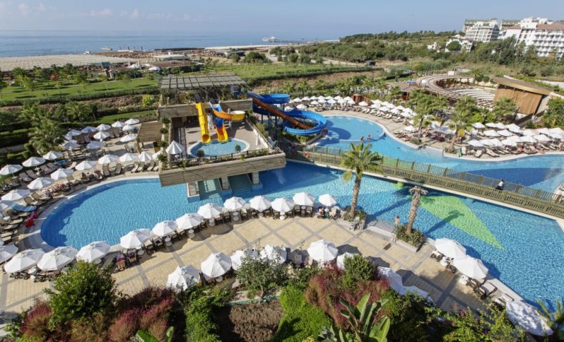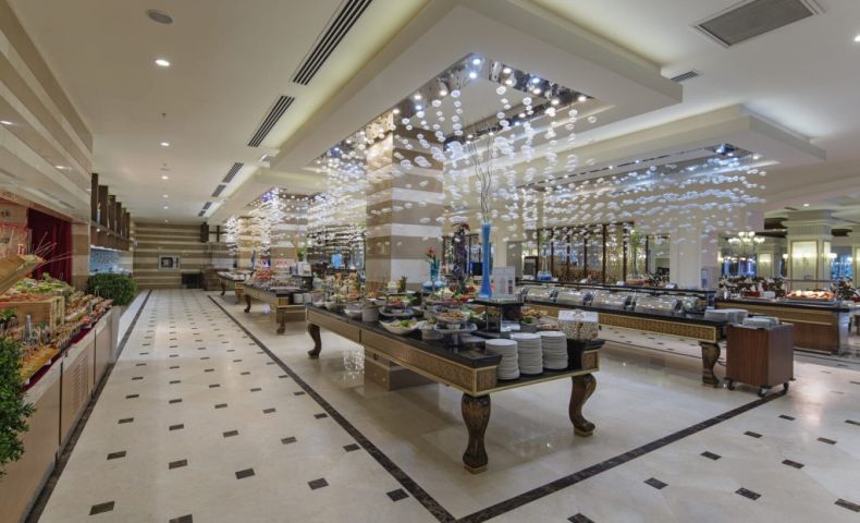 На територията на хотела: Денонощна рецепция, Основен ресторант с открита част и специална зона за хранене само за възрастни (+16), 24 часов ресторант с а ла карт меню  (Excellence Restaurant) включен в концепцията, 5 а ла карт ресторанта (турски, италиански, рибен, азиатски, мексинански), сладкарница, денонощен лоби бар с включени вносни напитки, 2 бара до басейна, диско бар, основен открит басейн, басейн с водни пързалки, вътрешен басейн,