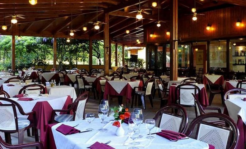 Ресторантът е открит от 3 страни, с изглед към градините и пищната зелена гора. Отворен за закуска, обяд и вечеря, ресторантът е специализиран в южната италианска кухня.