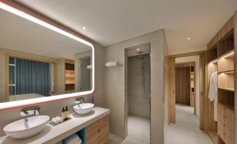 В стаите: Стаята разполага с всичко необходимо за комфортен престой: вана и душ, халат и чехли, аксесоари за баня, сешоар, климатик, телевизор, телефон, минибар, удобства за приготвяне на чай и кафе, ютия и дъска за гладене, питейна вода, диван, безплатен Wi-Fi и сейф.