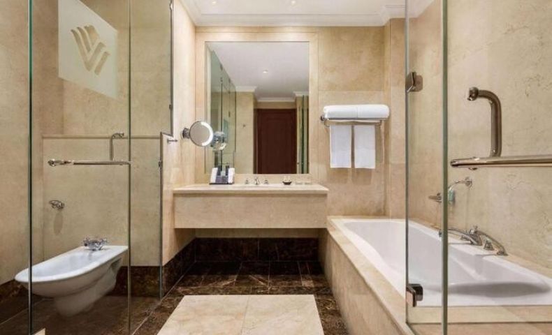 В стаите: Стаята разполага с телевизор, сателитна телевизия, климатик, вана и душ, сешоар, телефон, удобства за приготвяне на чай и кафе, сейф, WI-FI, мини хладилник, халати и чехли.