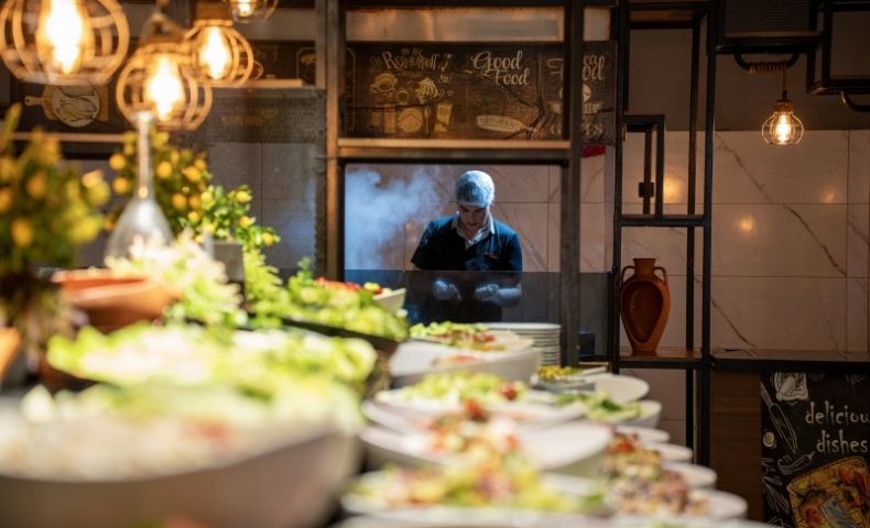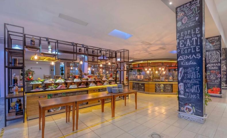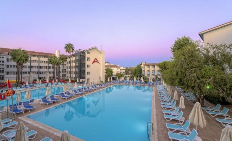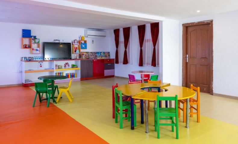 На територията: основен бюфет ресторант, 4 бара, 2 външни басейна, детска площадка, мини клуб за деца от 4 до 12 г.,билярд, тенис на маса, дартс, водно поло, спа център, водни спортове, интернет.