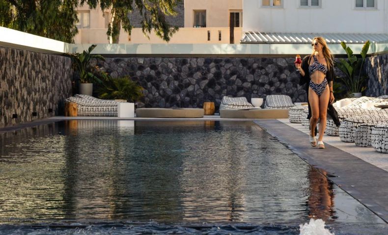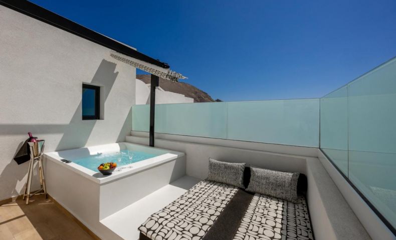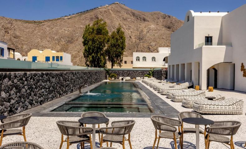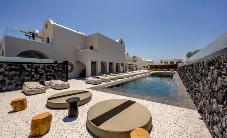 Хотелът се намира на 300 метра от плажа, в известния курорт Периса, на 12 километра от столицата на острова Фира. Летището на Санторини се намира на 10 км. Хотелът отваря врати през 2023 след пълна реконструкция.