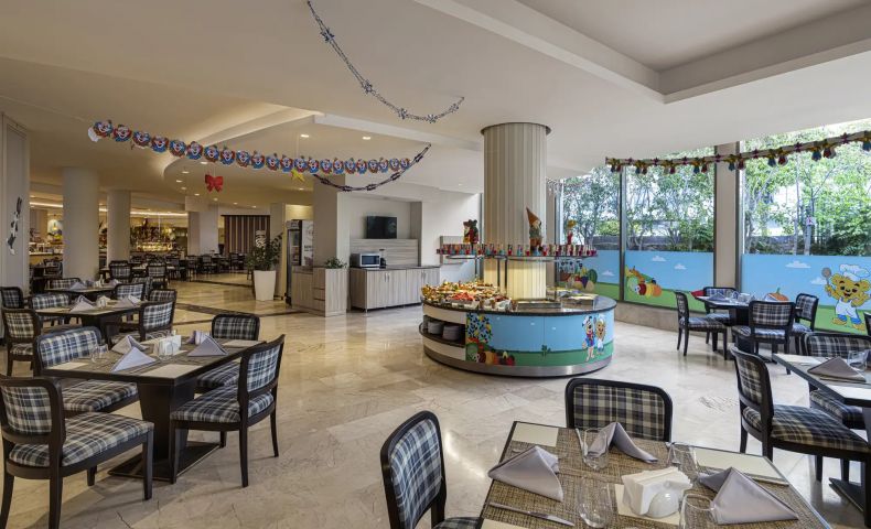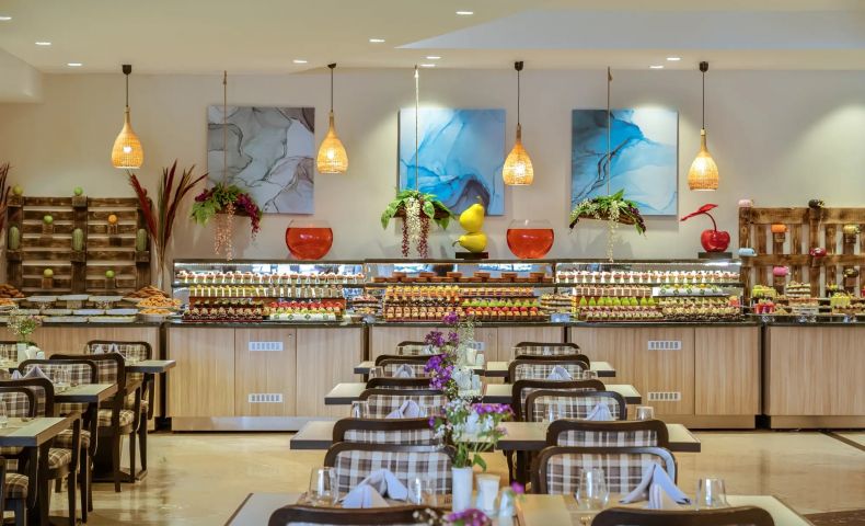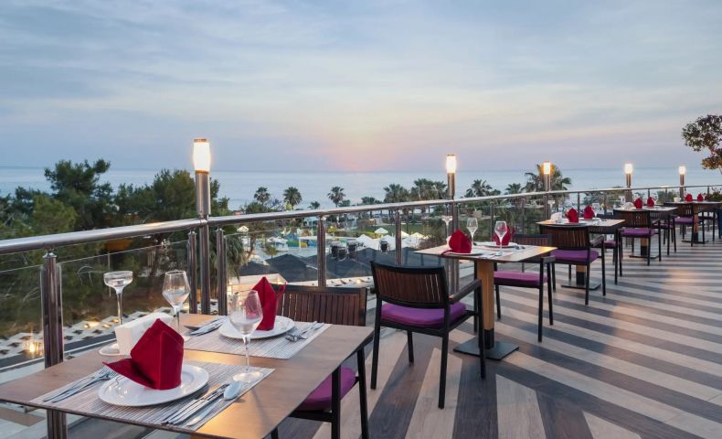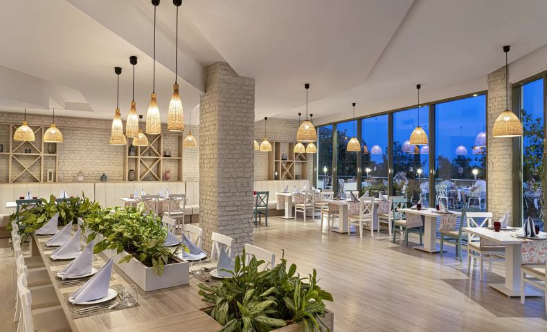 Основен ресторант, 3 а-ла-карт ресторанта (италиански, гръцки, барбекю - 1 безплатно посещение на 1 от ресторантите при минимум 7 нощувки, с предварителна резервация), 4 бара (1 от които 24-часа), 2 открити и 1 закрит басейн, 2 водни пързалки, СПА център, дискотека, магазини, конферентна зала, паркинг.