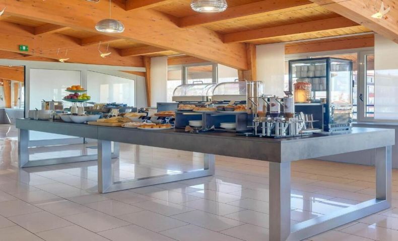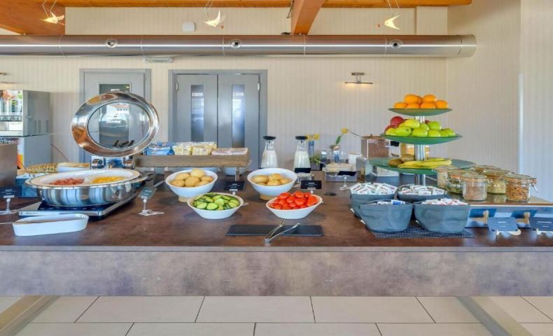 Хотелът предлага богата континентална закуска на бюфет, сервирана в светла и просторна зала. На разположение е и зона с вендинг автомати за напитки и леки закуски, както и общи пространства за кратка почивка или работа.