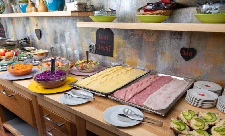 Хотелът разполага със закусвалня, в която се сервира бюфетна закуска. Налични са топли и студени предложения, кафе, чай и напитки.