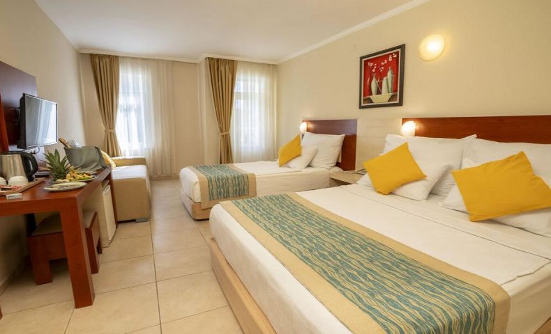 Хотелът е разположен на удобно място между центъра на Аланя и плажа, с отлична транспортна връзка и близост до основни туристически атракции и забележителности.