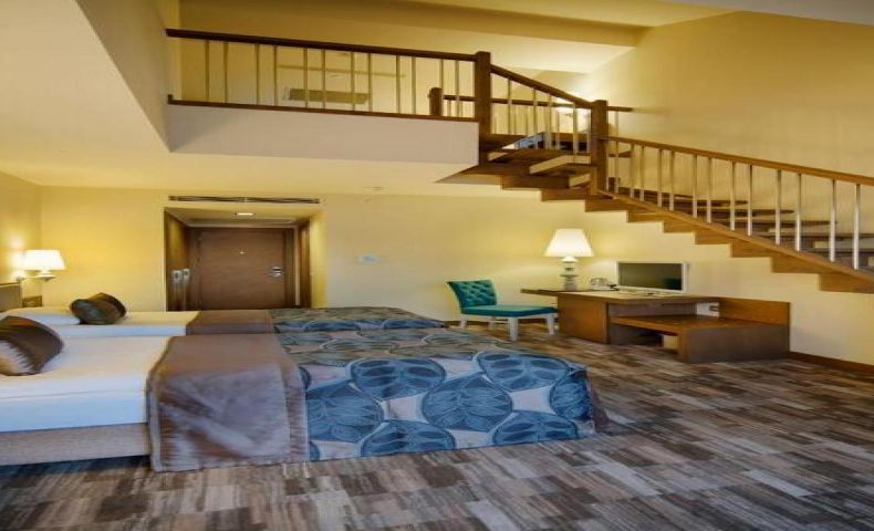 450–460 стаи с различни типове — стандартни, семейни, джуниър суити, вили и по‑големи фамилни помещения.