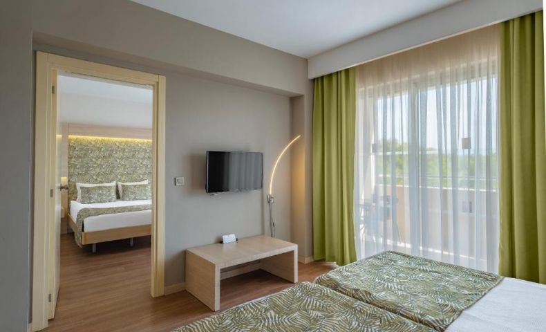 В стаите: Хотелът се състои от една основна сграда и разполага с общо 421 стаи. Всички са оборудвани с климатик, телевизор, телефон, баня с душ, мини - бар (безалкохолни напитки – зарежда се при пристигане - безплатно), сейф в стаята (безплатно), Почистване на стаите - всеки ден, смяна на спалното бельо - 3 пъти седмично.