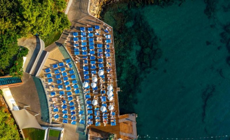 Плаж: Собствен – платформа на 3 нива. Безплатни чадъри, шезлонги, матраци и плажни кърпи.