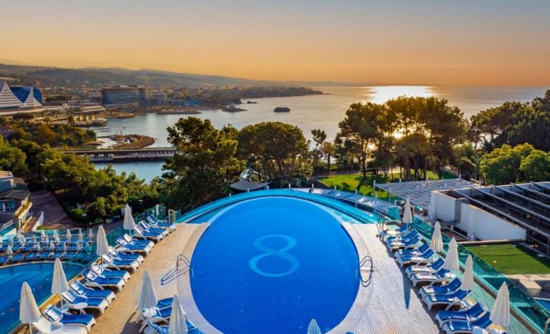 На територията на хотела: Основен бюфет ресторант, 3 а ла карт ресторанта (турски, барбекю и италиански – с такса за резервация), 6 бара, 3 открити басейна, аквапарк за възрастни и деца, басейн само за възрастни (+16).