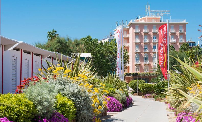 Хотелът се намира в сърцето на Марина Центро и само на 50 метра от плажа.. Хотел Милтън се радва на тихо местоположение, в непосредствена близост до дългогодишния Гранд Хотел, разположен в красива жилищна зона. Парк Фелини е само на няколко крачки: зелен оазис, където можете да се отпуснете или да се разходите по булевард Веспучи, осеян с дизайнерски магазини, уютни кафенета и добри ресторанти, и където се провеждат най-горещите летни събития. Хотел Milton е лесно достъпен от всяка посока и с всеки вид транспорт: центърът на града и жп гарата са само на 1,5 км и на 15 минути пеша.
