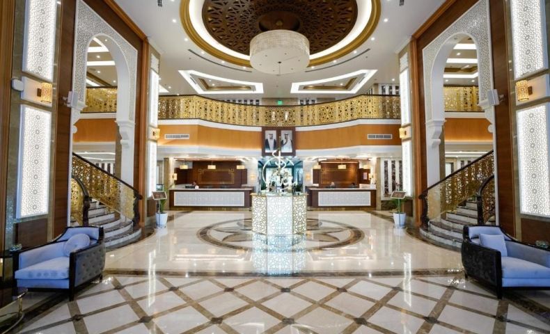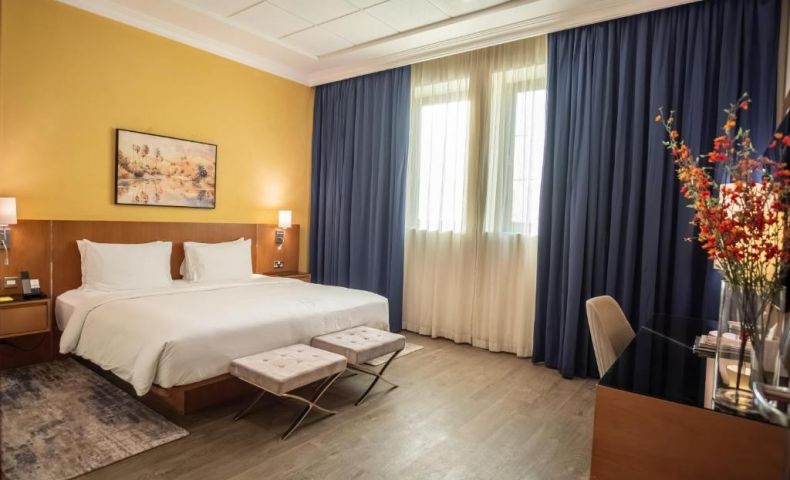 Хотелът сервира близкоизточна и местна кухня за обяд и вечеря. Опциите за закуска включват континентална, американска, шведска маса и пълна английска/ирландска закуска, включваща топли ястия, пресни сладкиши и други.