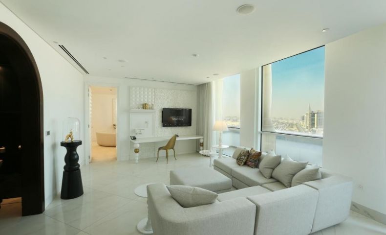Mondrian Doha се състои от 211 спални и 59 апартамента, разположени на 24 етажа, всички с мебели и обзавеждане по поръчка от Marcel Wanders, включително обзавеждане за баня, стенописи в спалнята, кристален полилей и вана, душ тип „тропически дъжд“. Стаите предлагат отделни зони за сядане и работно бюро, интелигентен мултимедиен, телекомуникационен и развлекателен център и 40-инчови LED телевизори с пълен кабелен достъп.