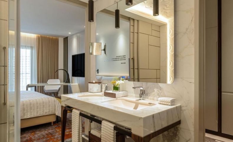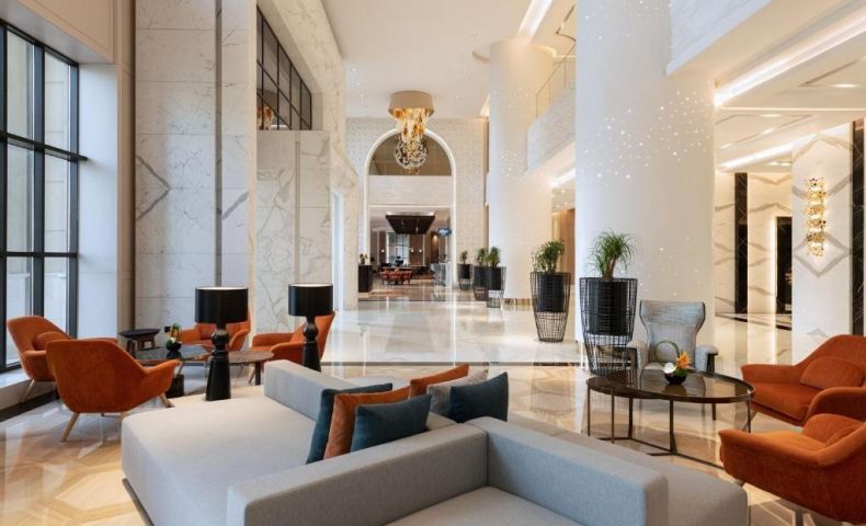 Le Royal Méridien Place Vendôme Lusail предлага 5-звездни помещения за настаняване с хидромасажна вана и тераса.