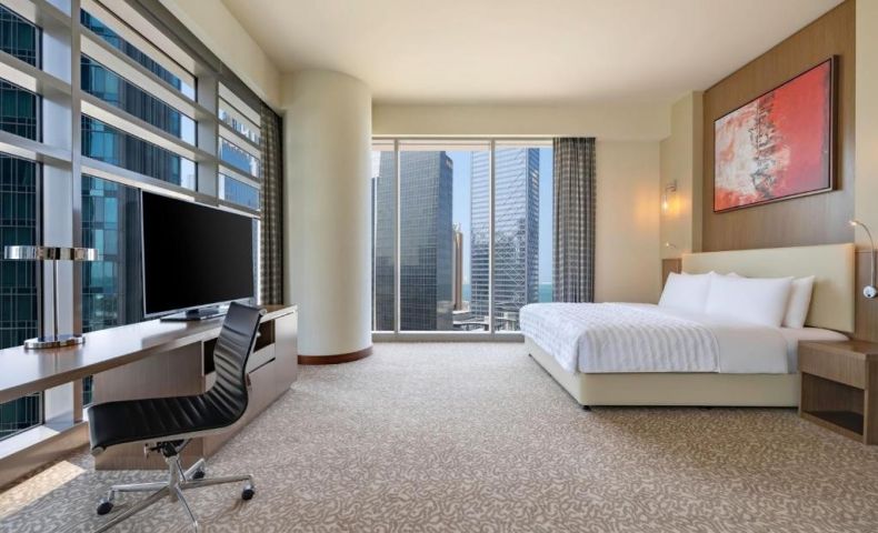 Хотел Le Meridien City Center Doha в Доха предлага луксозни стаи с изглед към морето или града, климатик, самостоятелна баня и модерни удобства. Всяка стая разполага с работно бюро, безплатни тоалетни принадлежности и телевизор с плосък екран.