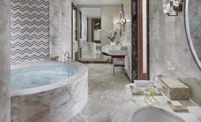 Хотелът разполага с открит и закрит плувен басейн, напълно оборудван фитнес център и награждаван спа център, предлагащ разнообразие от процедури, сауна и хидромасажна вана. Специални ястия се предлагат в Liang, кантонски ресторант, избран от Michelin, и IZU, сервиращ френска средиземноморска кухня.