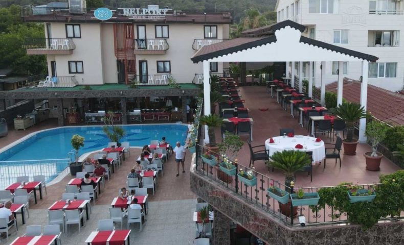 Хотел Belport Beach се намира в курортната зона Белдипи-Кемер, на 15 км от град Кемер, на много красиво място, заобиколено от зелени планини. В близост до хотела се намират исторически забележителности и разнообразни туристически забавления. Кристално чистото море, удобният чакълест плаж и очарователната градина създават прекрасен фон за този уютен хотел, в който са създадени всички условия за добра почивка.
