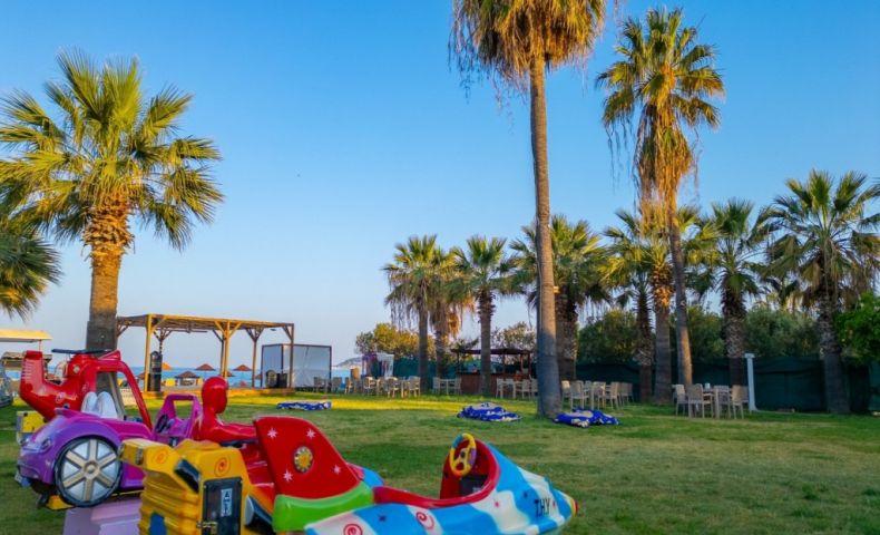 Плаж: Собствен пясъчен плаж непосредствено пред хотела. Шезлонги и чадъри се предоставят безплатно на плажа и край басейна.Бар на плажа.
