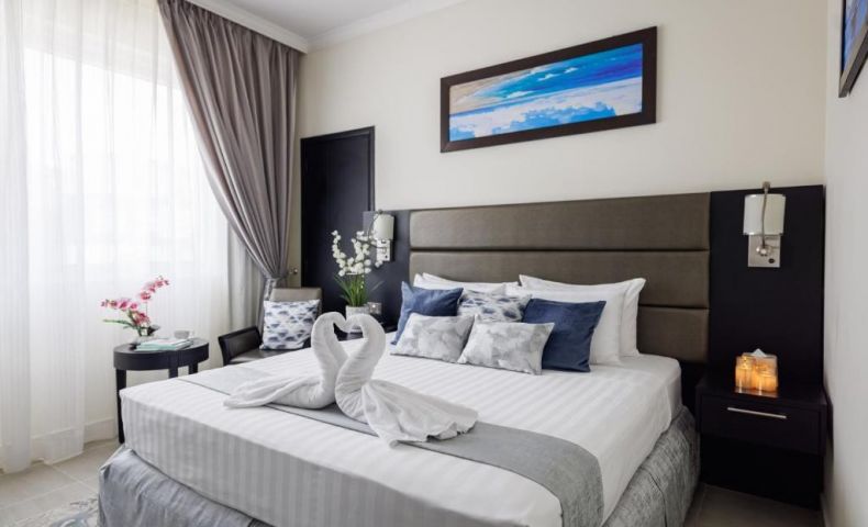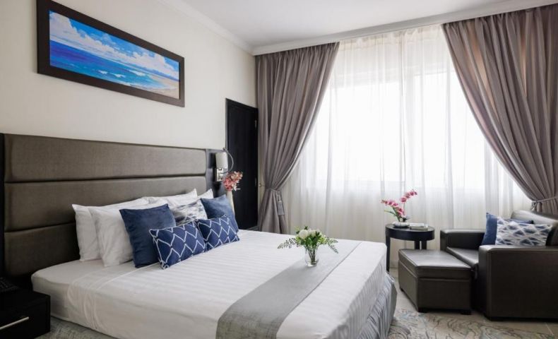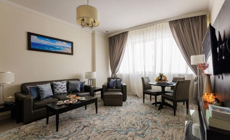 Всички помещения за настаняване в хотел Royal Riviera Doha са климатизирани и обзаведени с модерен декор. Всяка стая и апартамент са с мокет, минибар и самостоятелна баня с безплатни тоалетни принадлежности. Някои предлагат изглед към морето и града.