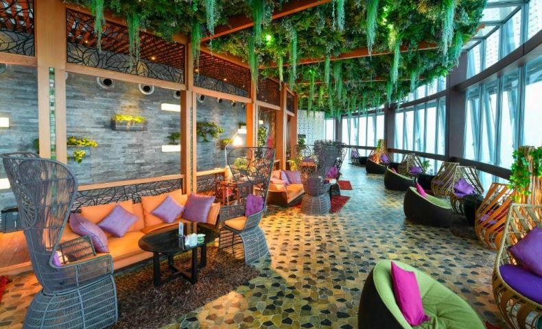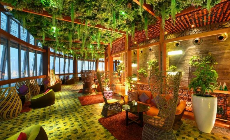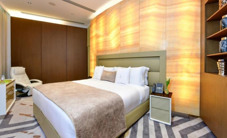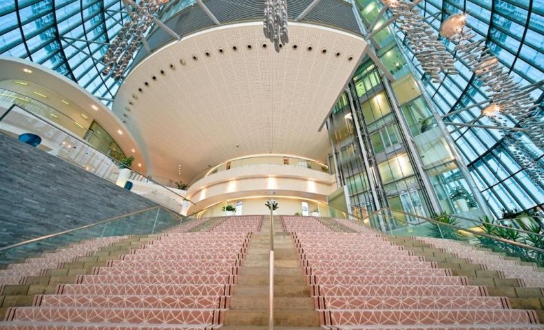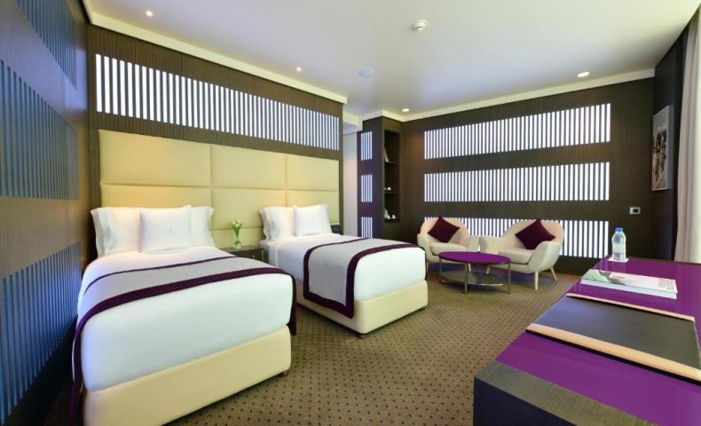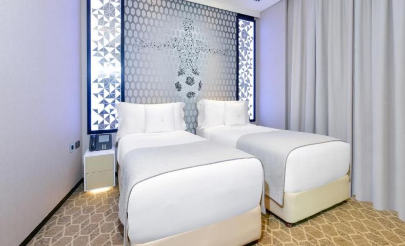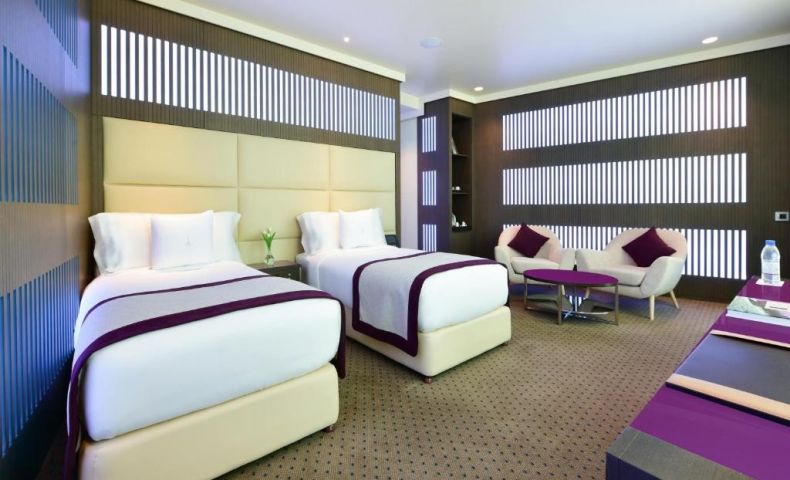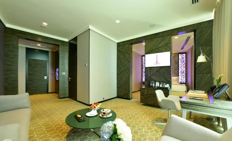 Този дизайнерски хотел, разположен в сграда с форма на факла в Доха, разполага с въртящ се ресторант и панорамна гледка към града. Включва инфинити басейн, фитнес клуб и салон за красота.