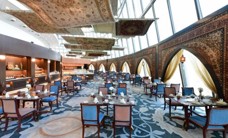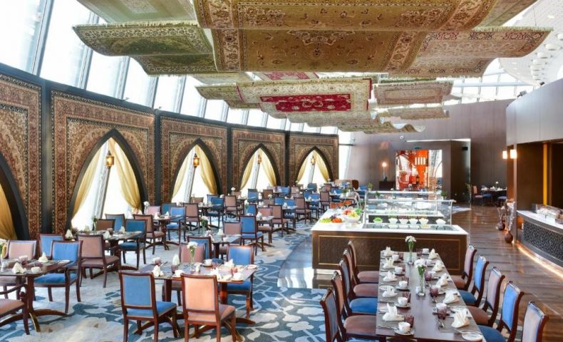 Закуска се сервира ежедневно в ресторант Flying Carpet с неговия шикозен декор, включително летящи килими. За вечеря гостите могат да се насладят на италианска паста и средиземноморски меса.