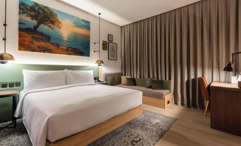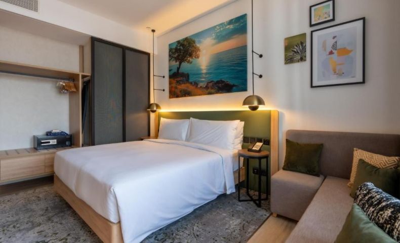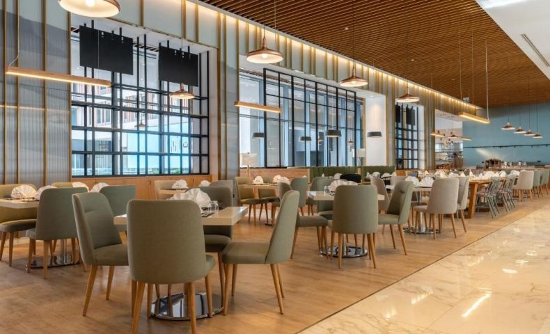 Ресторантът, подходящ за семейства, сервира средиземноморска, близкоизточна и международна кухня с халал опции. Вечерята се предлага в модерна или романтична обстановка.