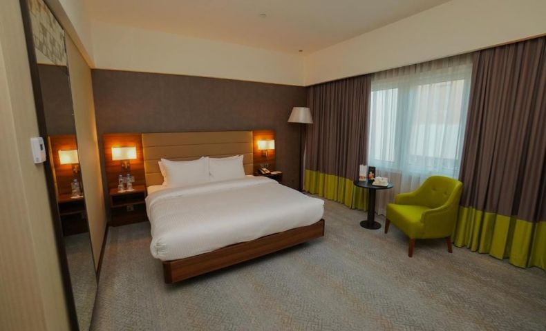 Хотелът сервира закуска на шведска маса с пресни сладкиши, палачинки, сирене и плодове. Опциите за хранене включват китайска, индийска, американска, близкоизточна кухня и пица.
