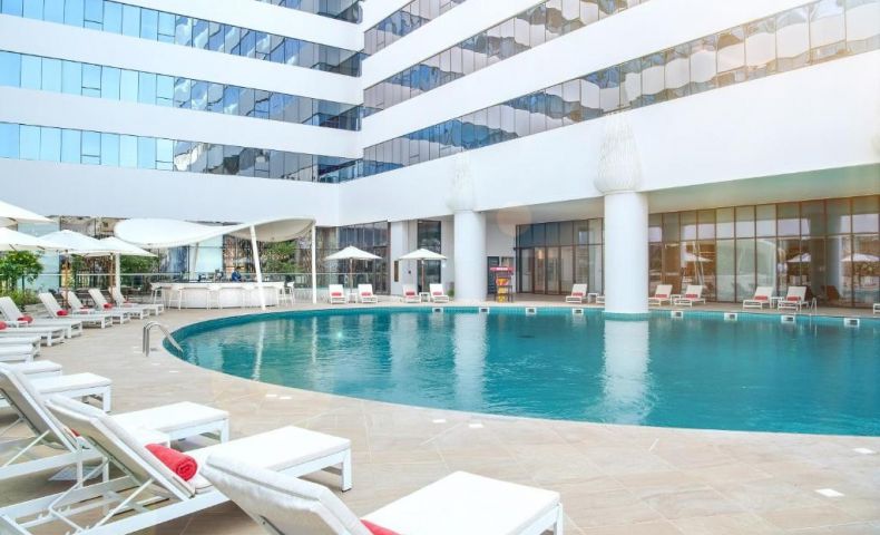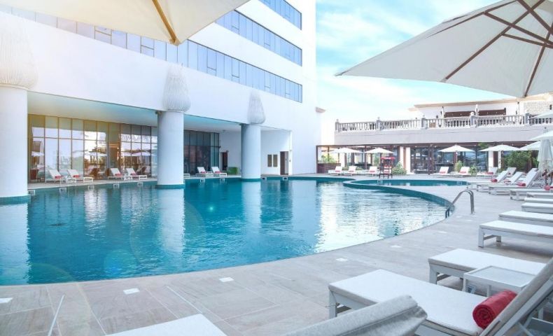 На територията на хотела: Два открити басейна с температурен контрол на водата, 2 бара, 4 ресторанта, рецепция, асансьор, перално помещение (срещу заплащане), паркинг, помещение за багаж, обмяна на валута при заявка, конферентна зала.